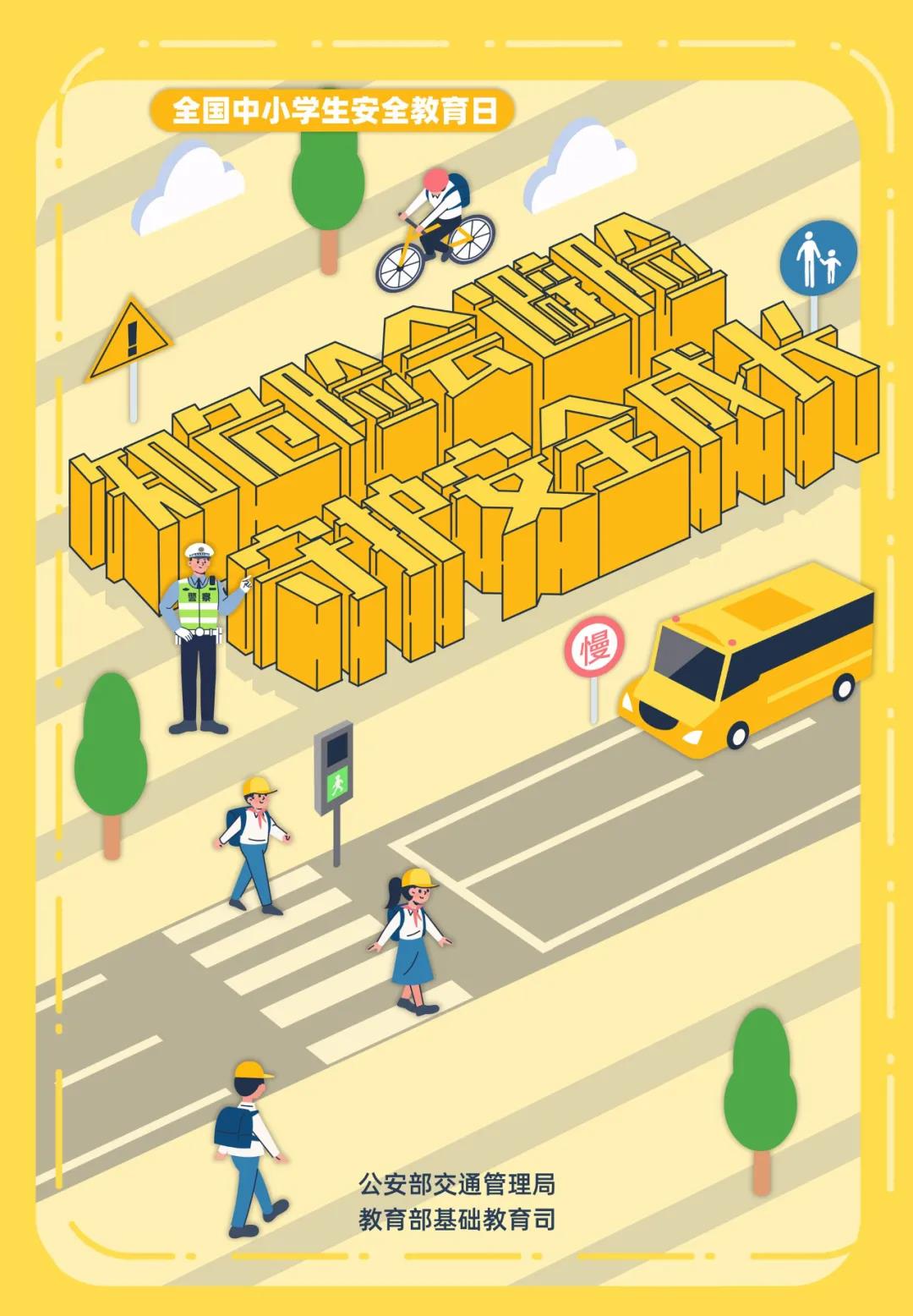 孩子是祖国的未来、民族的希望,今年3月29日是全国中小学生安全教育日。1996年,国家教委、劳动部、公安部、交通部、铁道部、国家体委、卫生部联合发布关于建立全国中小学生安全教育日的通知,确定每年3月最后一周的星期一为全国中小学生安全教育日。我们呼吁每一位家长、监护人安全守法文明出行,做好行为示范引导,全社会共同关注孩子出行安全,一起创造安全畅通和谐有序的道路交通环境,守护孩子们的健康成长!